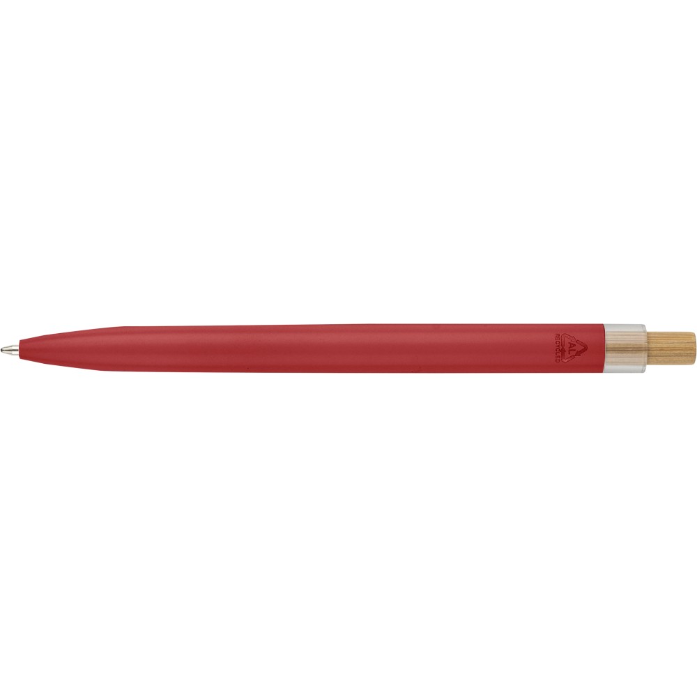Újrahasznosított alumíniumból készült, lakkozott tollszett golyóstollal és rollerball tollal. A golyóstoll bambusz nyomógombbal, rPET díszítéssel és fém klippel rendelkezik, míg a rollerball toll bambusz/rPET kupakdíszítéssel és hozzá illeszkedő klippel. A tolltesten gravírozott recycled (újrahasznosított) alapanyagra utaló logó található mindkét toll esetében. A golyóstoll kb. 700 méter, a roller toll kb. 500 méter íráskapacitású, mindkettő kék színű tollbetéttel. Színes, újrahasznosított kartonból készült ajándékdobozba csomagolva.