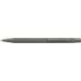 Újrahasznosított alumínium golyóstoll lágy tapintású gumírozott felülettel és kék tollbetéttel. Sötétszürke kiegészítőkkel és a bevonat alatti tükörhatású réteggel tervezve a látványos gravírozási eredmény érdekében. Nyomógombos szerkezettel és gravírozott újrahasznosított logóval.