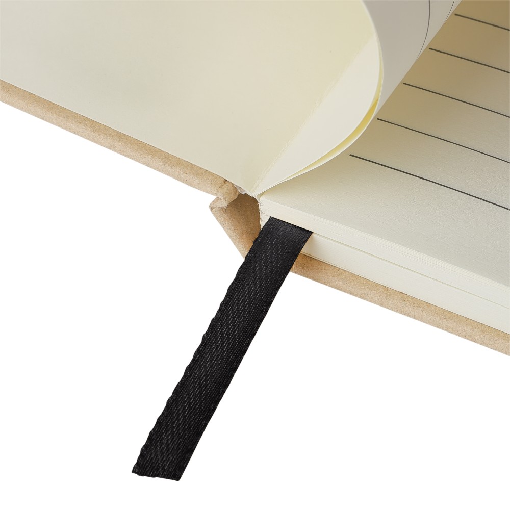 A5-ös jegyzetfüzet kemény nátronpapír (kraft) borítással és alumínium fólia hordozóréteggel, amelyet lézergravírozáshoz terveztek: a gravírozás után látványos tükörhatás válik láthatóvá. 80 vonalas, 70 g/m2 súlyú lapot tartalmaz a sima írásélmény érdekében. A füzetben használt papír FSC Mix tanúsítvánnyal rendelkezik. Színben passzoló részletekkel, például gumírozott rögzítőpánttal, könyvjelző szalaggal és tolltartó hurokkal rendelkezik.