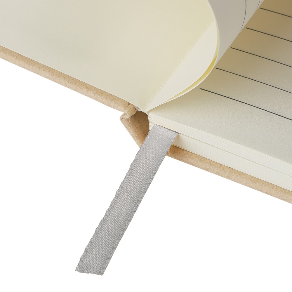 A5-ös jegyzetfüzet kemény nátronpapír (kraft) borítással és alumínium fólia hordozóréteggel, amelyet lézergravírozáshoz terveztek: a gravírozás után látványos tükörhatás válik láthatóvá. 80 vonalas, 70 g/m2 súlyú lapot tartalmaz a sima írásélmény érdekében. A füzetben használt papír FSC Mix tanúsítvánnyal rendelkezik. Színben passzoló részletekkel, például gumírozott rögzítőpánttal, könyvjelző szalaggal és tolltartó hurokkal rendelkezik.