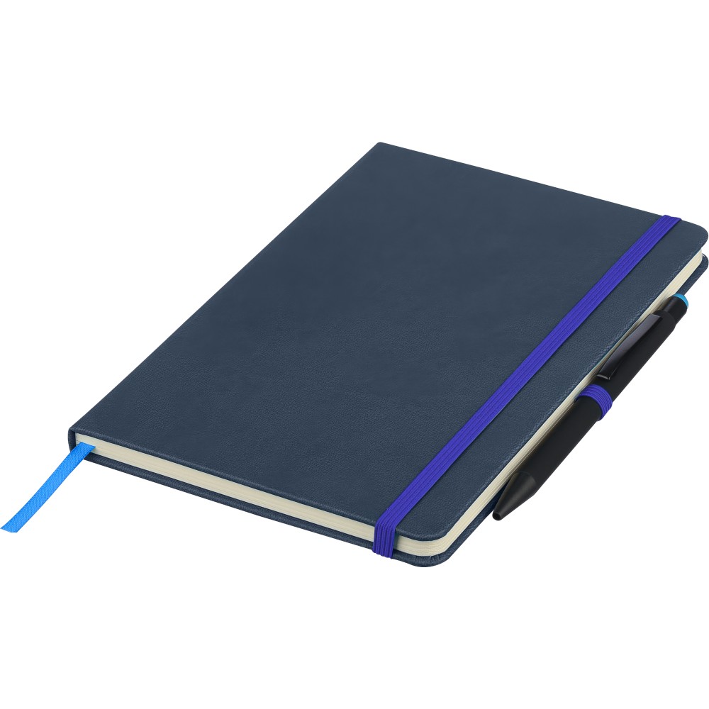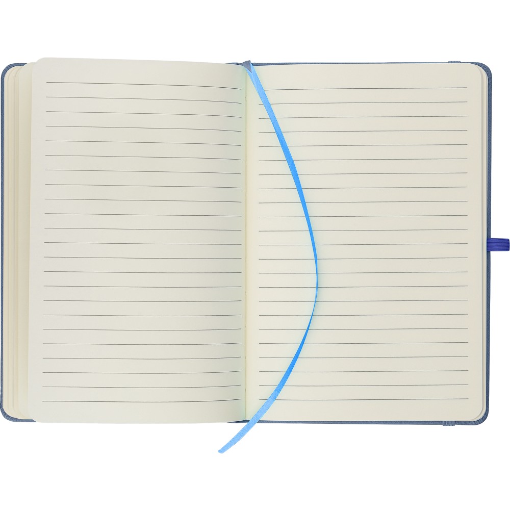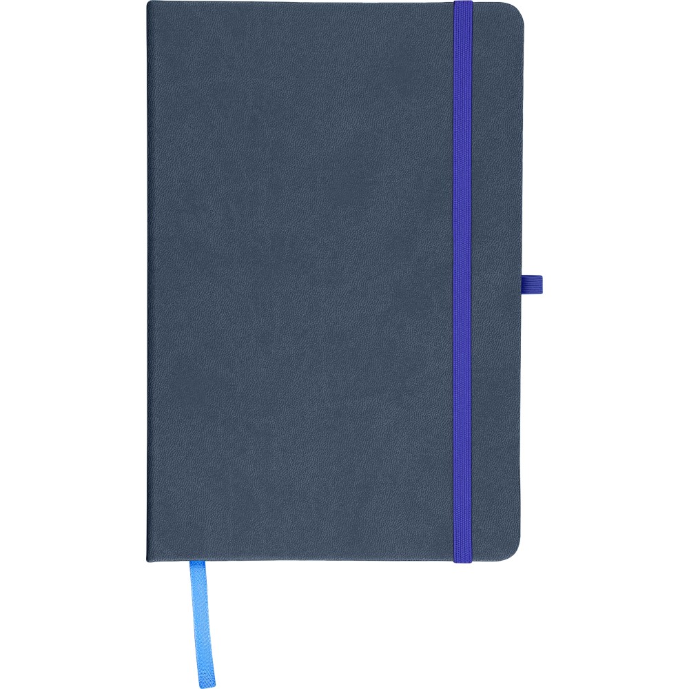 A5-ös jegyzetfüzet újrahasznosított kemény PU borítóval, a hátoldalán dombornyomott újrahasznosított logóval. Tartós és rugalmas anyagból készült, amely kényelmes fogást, párnázottságot és hosszan tartó használatot biztosít. A borító lézergravírozásra alkalmas, amely során finom, tone-on-tone (színazonos) hatás érhető el. 80 vonalas, 70 g/m2 súlyú lapot tartalmaz, színben illeszkedő gumírozott rögzítőpánttal, könyvjelző szalaggal és tolltartó hurokkal. A füzetben használt papír FSC Mix tanúsítvánnyal rendelkezik.