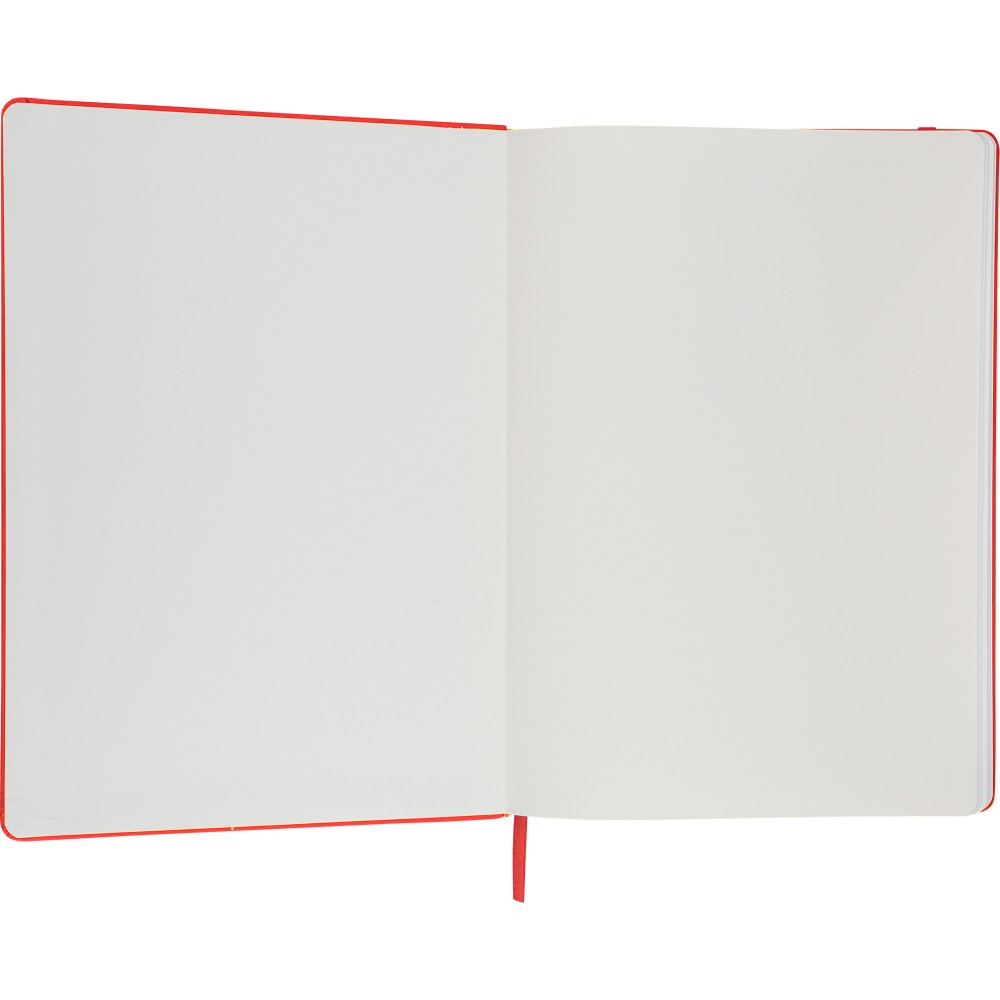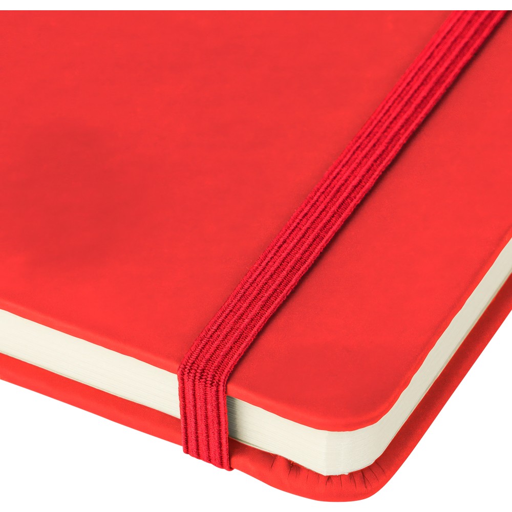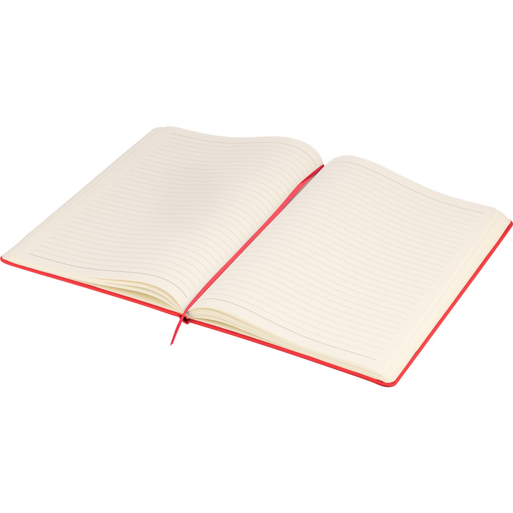 A4-es jegyzetfüzet élénk színű, újrahasznosított anyagból (PU) készült kemény borítóval. 96 db kétoldalas, vonalas lapot tartalmaz (6 g/m2), 0,7 cm-es vonalközzel, az elején és a végén két-két üres oldallal. A füzetben használt papír FSC Mix tanúsítvánnyal rendelkezik. Színben illeszkedő gumírozott rögzítőpánttal, beépített könyvjelző szalaggal és a hátoldalán dombornyomott újrahasznosított PU logóval ellátva.