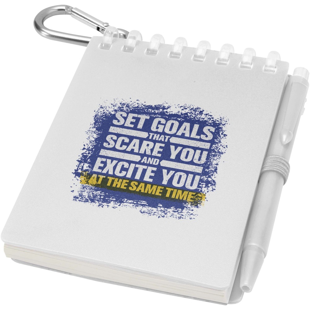A Lig Mini jegyzetfüzet és toll szett kompakt és praktikus társ a gyors jegyzeteléshez útközben. A spirálfüzet puha, újrahasznosított műanyag borítással és 70 darab, 120 g/m2 súlyú, vízálló kőpapírból készült üres lappal rendelkezik, így ideális választás szabadtéri használatra is. A kerekített sarkokkal és beépített tolltartó pánttal ellátott kiegészítő tökéletesen követi a "mini" trendet, miközben teljesen funkcionális marad. A szetthez tartozó golyóstoll újrahasznosított ABS műanyagból készült, fekete tintával ír, íráshossza pedig 250 méter. A színben harmonizáló fémgyűrű segítségével a szett könnyen rögzíthető hátizsákra, táskára vagy kulcscsomóra, így tartós és hordozható megoldást nyújt a jegyzetek rögzítéséhez. A jegyzetfüzet mérete: 11 × 7,5 cm.