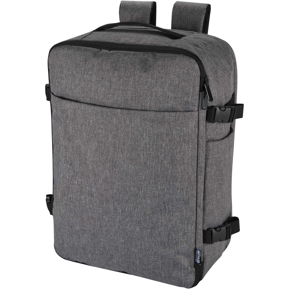 GRS tanúsítvánnyal rendelkező újrahasznosított poliészterből készült, RPET béléssel ellátott Libra hátizsák, melynek méretei megfelelnek a légitársaságok kézipoggyászra vonatkozó előírásainak. A táska egy dedikált, legfeljebb 17" méretű eszközök fogadására alkalmas laptoptartó rekesszel, valamint egy tágas főrésszel rendelkezik, amelyben rugalmas pántok és hálós elválasztók biztosítják a tartalom rendezettségét. Az elülső oldalon két nagyméretű cipzáras zseb található az alapvető kellékek gyors eléréséhez. A kényelmes viseletről és a praktikus szállításról légáteresztő hátpanel, bőröndre rögzíthető pánt, állítható vállpántok, mellkaspánt, valamint felső és oldalsó hordozófogantyúk gondoskodnak. Letisztult megjelenése és funkcionális kialakítása miatt kiváló választás üzleti utakhoz vagy irodán kívüli munkavégzéshez, miközben alapanyaga az öko-tudatosságot tükrözi.