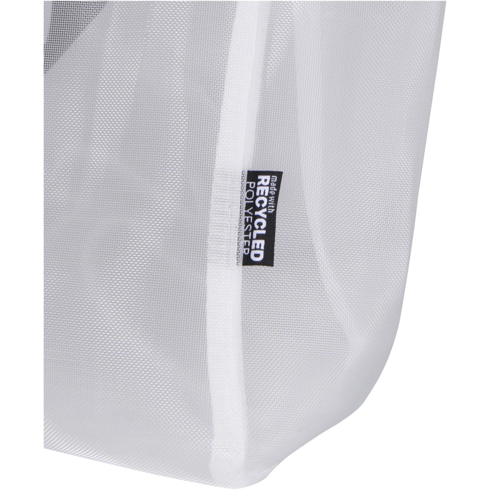 Ez az újrahasznosított poliészter hálóból készült hátizsák fenntartható választást kínál a praktikum és a stílus megőrzése mellett. A termék egy tágas, 18 literes főrekesszel rendelkezik a mindennapi alapfelszerelések számára, egy cipzáras elülső zsebbel a kisebb tárgyaknak, valamint két oldalsó zsebbel, amelyek ideálisak vizespalack vagy esernyő tárolására. A párnázott, állítható vállpántok biztosítják a kényelmes viseletet a nap folyamán. Az átlátszó hálós szerkezet letisztult, modern megjelenést kölcsönöz, miközben láthatóvá teszi a táska tartalmát, így tökéletes megoldást jelent olyan munkahelyeken, rendezvényeken vagy iskolákban, ahol előírás az átlátszó táska használata.