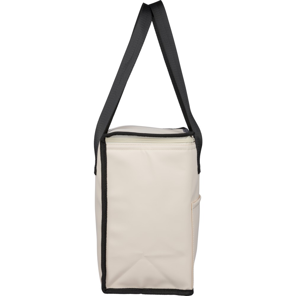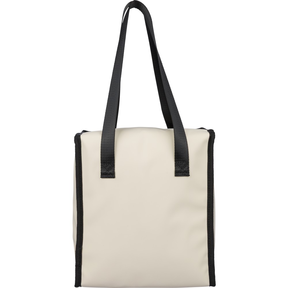Újrahasznosított PU anyagból készült hűtőtáska 9 literes űrtartalommal, 210D újrahasznosított poliészter béléssel. 2,5 × 66 cm méretű hosszú fülekkel és elülső tárolózsebbel rendelkezik. A belső címkén újrahasznosított alapanyagra utaló logó található.
