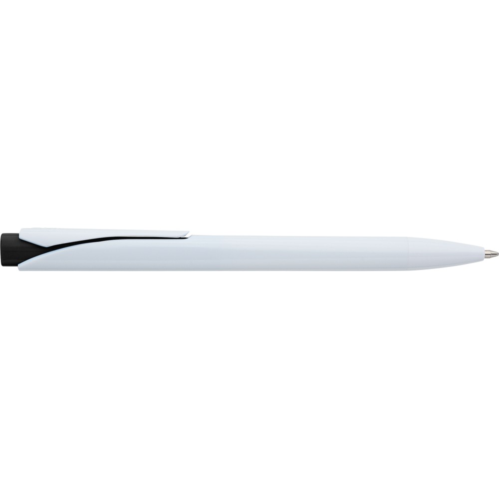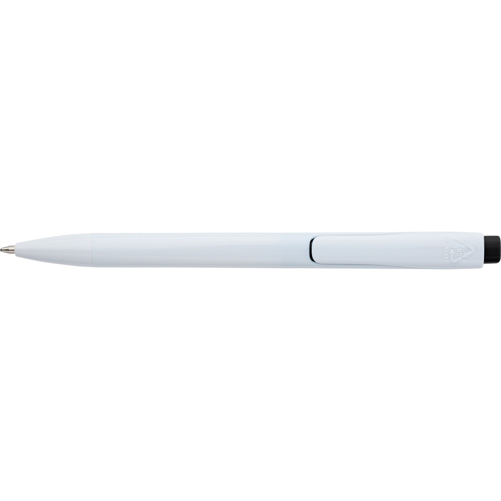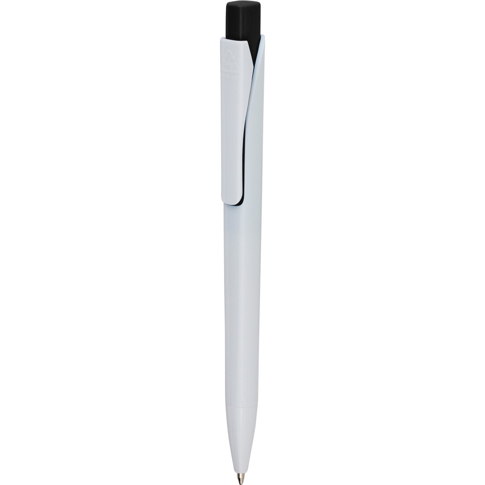 Golyóstoll tömör fehér tolltesttel és színes nyomógombbal. Újrahasznosított ABS-ből készült. Nyomógombos szerkezettel, klipsszel, valamint a nyomógomb tetején újrahasznosított ABS logóval rendelkezik. Kék színű, német Dokumental tollbetéttel, mely körülbelül 800 méter íráshosszt biztosít.