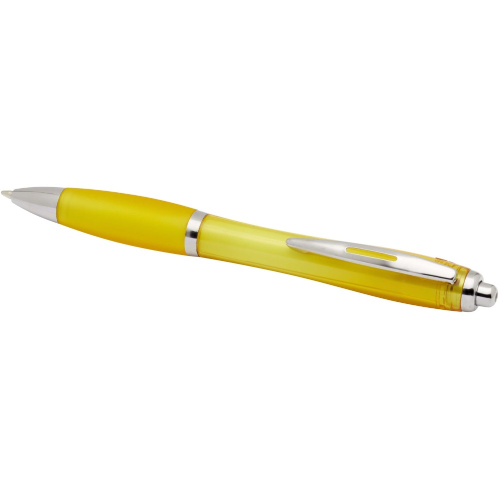 A Nash újrahasznosított műanyagból készült nyomógombos golyóstoll stílusos, ívelt kialakítású, áttetsző színes tolltesttel, ezüst díszítéssel és a tolltest színével megegyező, kényelmes írást biztosító puha fogórésszel rendelkezik. Az RCS tanúsítvánnyal rendelkező újrahasznosított ABS műanyagból készült termék segít csökkenteni a szűz alapanyagok felhasználását, miközben megőrzi tartósságát. A toll hátoldalán található rABS logó jelzi az újrahasznosított anyagösszetételt. Tinta színe: kék. Tollhegy mérete: 1.0 mm. Íráshossz: 1000 méter.