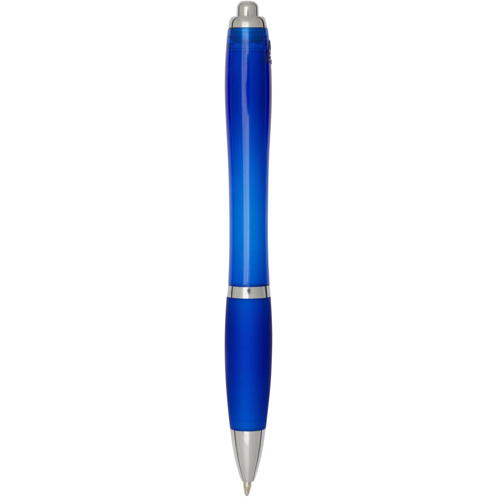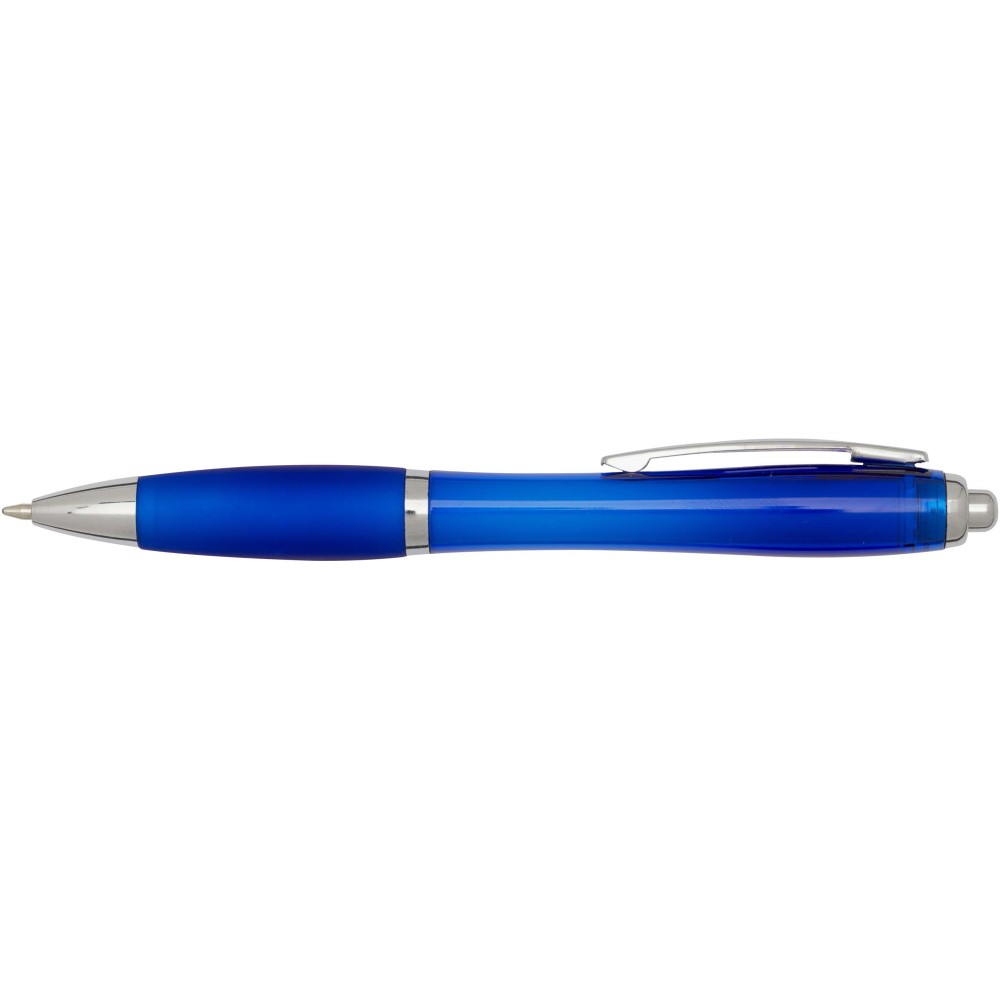 A Nash újrahasznosított műanyagból készült nyomógombos golyóstoll stílusos, ívelt kialakítású, áttetsző színes tolltesttel, ezüst díszítéssel és a tolltest színével megegyező, kényelmes írást biztosító puha fogórésszel rendelkezik. Az RCS tanúsítvánnyal rendelkező újrahasznosított ABS műanyagból készült termék segít csökkenteni a szűz alapanyagok felhasználását, miközben megőrzi tartósságát. A toll hátoldalán található rABS logó jelzi az újrahasznosított anyagösszetételt. Tinta színe: kék. Tollhegy mérete: 1.0 mm. Íráshossz: 1000 méter.