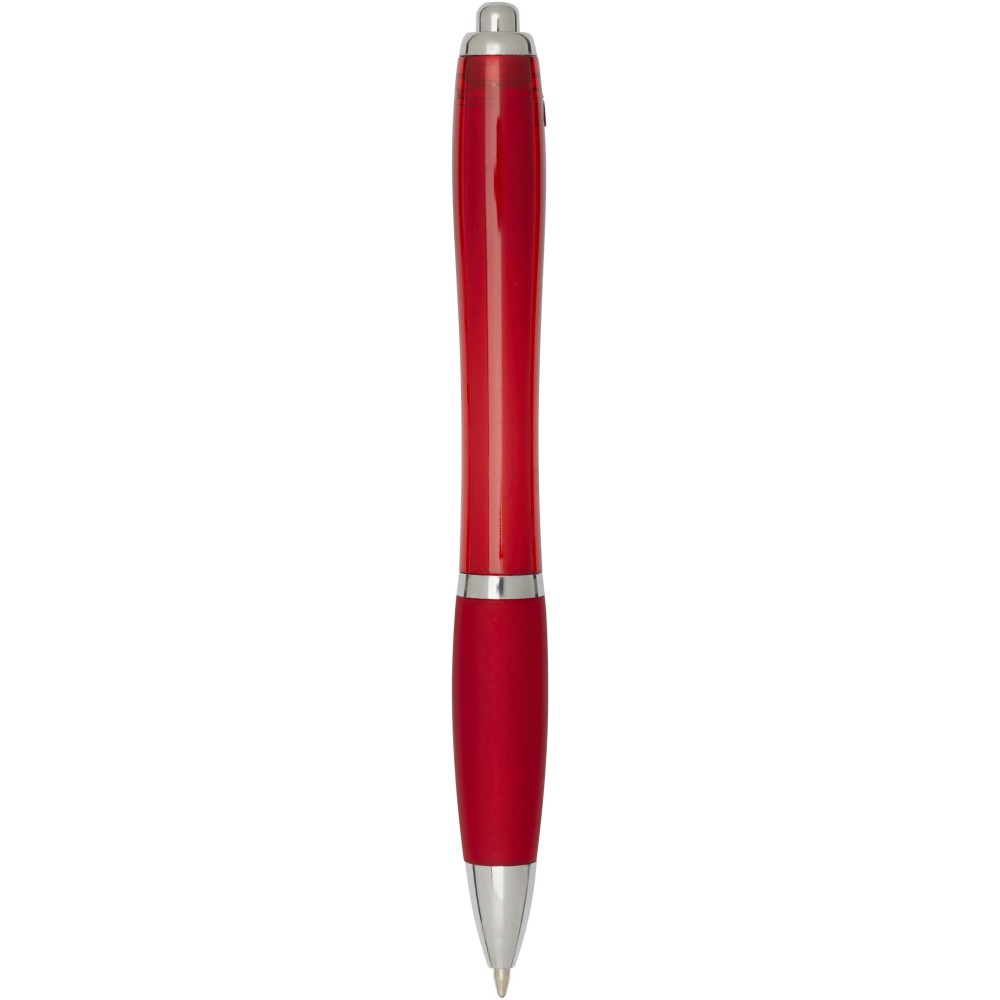 A Nash újrahasznosított műanyagból készült nyomógombos golyóstoll stílusos, ívelt kialakítású, áttetsző színes tolltesttel, ezüst díszítéssel és a tolltest színével megegyező, kényelmes írást biztosító puha fogórésszel rendelkezik. Az RCS tanúsítvánnyal rendelkező újrahasznosított ABS műanyagból készült termék segít csökkenteni a szűz alapanyagok felhasználását, miközben megőrzi tartósságát. A toll hátoldalán található rABS logó jelzi az újrahasznosított anyagösszetételt. Tinta színe: fekete. Tollhegy mérete: 1.0 mm. Íráshossz: 1000 méter.