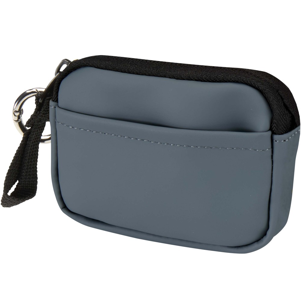 Minőségi újrahasznosított PU bőrből készült, felcsatolható pénztárca, amely ötvözi a letisztult stílust a mindennapi praktikummal. A biztonságos cipzáras záródással és belső kártyatartó rekesszel ellátott kiegészítő gondoskodik az értéktárgyak rendszerezett és könnyen hozzáférhető tárolásáról. Egyszerűen rögzíthető táskához, övbújtatóhoz vagy kulcscsomóhoz.