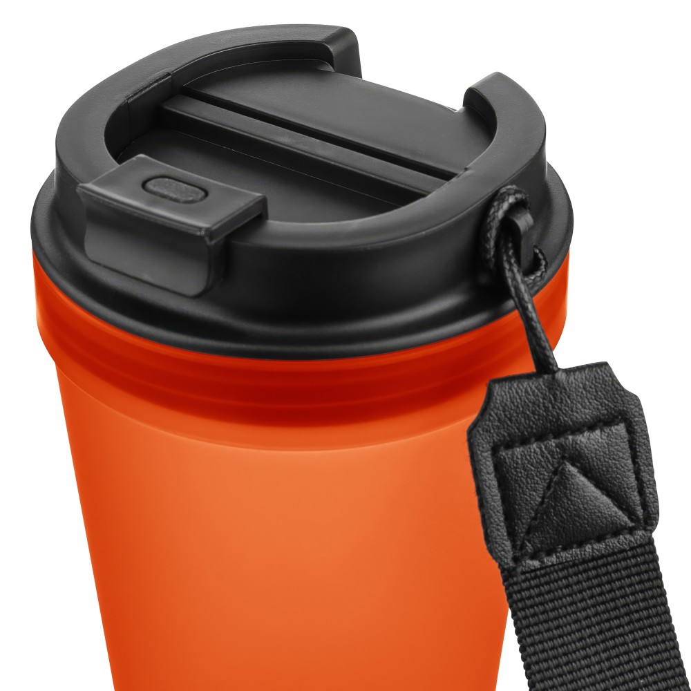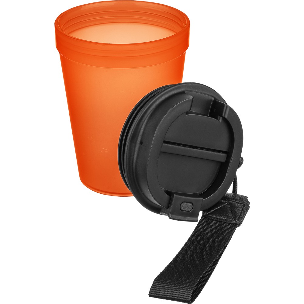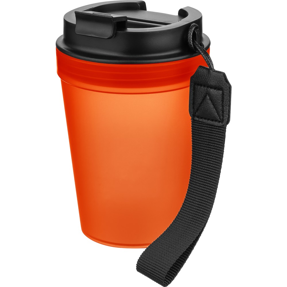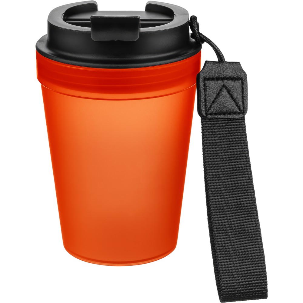 Átlátszó, szimplafalú ivópohár 350 ml-es űrtartalommal, vastagfalú kialakítással. Csavaros fedéllel és poliészter csuklópánttal rendelkezik a könnyű hordozhatóság érdekében. Tartós, ütésálló, megbízható termék. Meleg italokhoz is alkalmas, de kérjük, vegye figyelembe, hogy az egyfalú szerkezet miatt hőátadás előfordulhat.