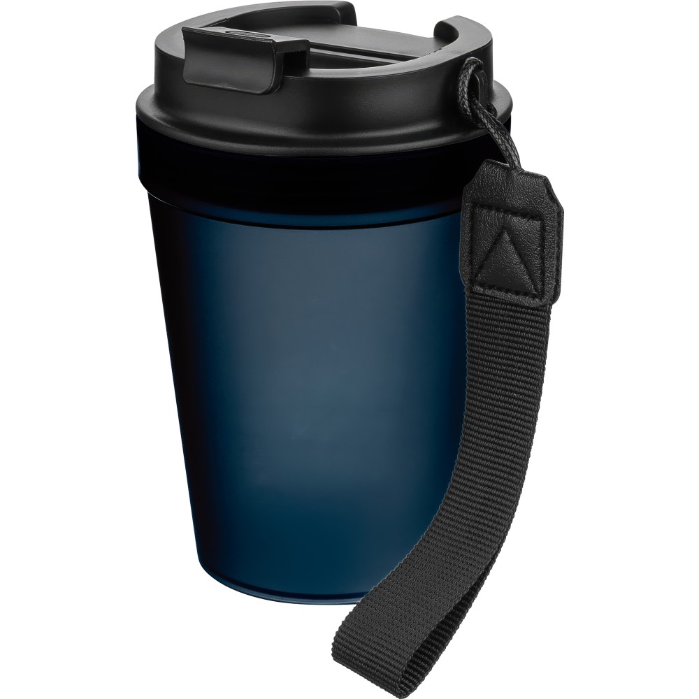 Átlátszó, szimplafalú ivópohár 350 ml-es űrtartalommal, vastagfalú kialakítással. Csavaros fedéllel és poliészter csuklópánttal rendelkezik a könnyű hordozhatóság érdekében. Tartós, ütésálló, megbízható termék. Meleg italokhoz is alkalmas, de kérjük, vegye figyelembe, hogy az egyfalú szerkezet miatt hőátadás előfordulhat.