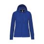 80% pamut és 20% poliészter. Belül bolyhos anyag, szürke színű szalagerősítés a nyakban, bélelt kapucni, kenguruzseb, bordás ujj- és derékpasszé, YKK cipzár. 300 g/m2. XS-2XL.