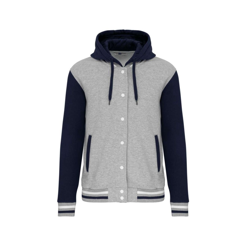Kontrasztos színű ujjak. 3 részes kapucni jersey belsővel és kontrasztos színű húzózsinórral. Bordás passzék. 2 elülső bevágott zseb. Twill passzé és akasztó a gallér belsőn. Nincs márkajelzés a nyaknál, csak méretcímke, így könnyen ellátható saját márkajelzéssel. 70% pamut és 30% poliészter.320g/m2.