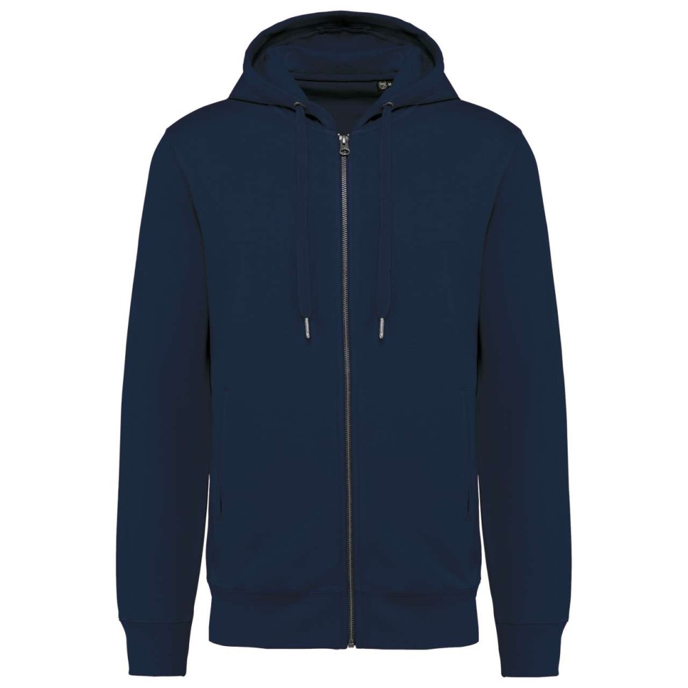 80% bio pamut / 20% újrahasznosított poliészter. Oxford szürke 75% bio pamut / 25% újrahasznosított poliészter. Francia frottír LST (Low Shrinkage Terry). Szövet: enzimes mosás. Karcsúsított szabás. 2 csíkos elülső zseb. Fém cipzár. Bordázott kézelő, bordázott szegély és bélelt kapucni. Fémvégű húzózsinórral. Félhold alakú kivitel a nyakkivágásnál, hogy megkönnyítse a díszítéshez való hozzáférést belülről. Twill szalaggal erősített nyak. Nincs márkacímke a nyakon, csak méretcímke a dekorációhoz való könnyebb hozzáférés érdekében. OEKO-TEX N CQ1007/7 STANDARD 100 tanúsítvánnyal rendelkezik. IFTH.
