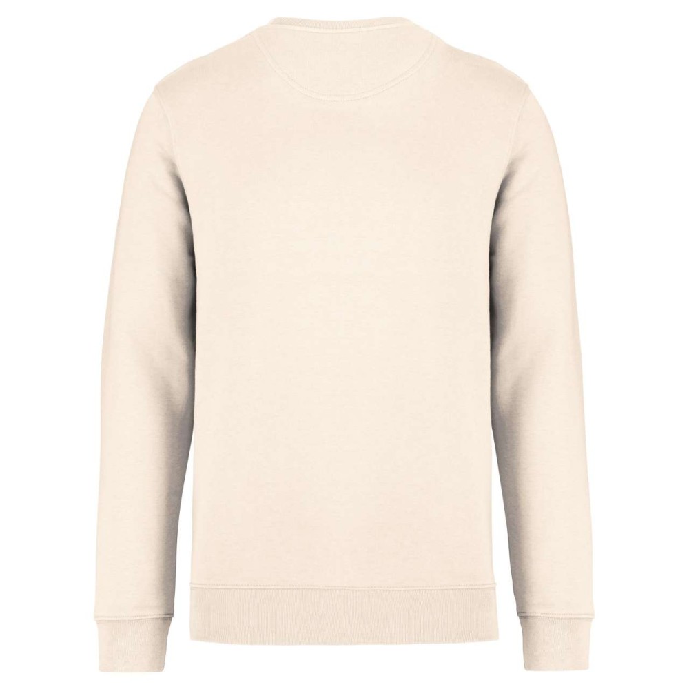 85 % bio, fésült pamutból és 15 % újrahasznosított poliészterből készült. Unisex. Egyenes szabás. LSF (Low Shrinkage Fleece: előzsugorított polár). Kerek nyakkivágás. Félhold alakú. Méretcímke organikus pamut és újrahasznosított poliészter logóval. 1x1 bordás nyakpasszé, alsó szegély és kézelő. Duplaöltés a kézelőn, karöltőben és kézelőn. Egyszeres felülvarrás a nyakkivágáson. Belső szalagozott nyakrész. A nyakrészen nincs márkajelzés, csak méretcímke a könnyebb dekorálás érdekében. A ruhadarabhoz kartonpapírból készült ismertetővel, amely felsorolja a felhasznált környezetbarát anyagokat. OEKO-TEX N CQ1007/7 STANDARD 100 tanúsítvánnyal rendelkezik. IFTH. 350 g/m2.