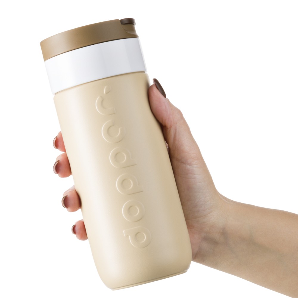 Reggeli koffeinlöket, napközbeni hidratálás vagy esti frissítő pezsgés ? ez a Dopper Travel Mug mindenre készen áll, bárhová is tartasz. Gőzölgően melegen tartja a forró italokat, hűvösen a hidegeket, és megőrzi a szénsavas italok buborékait is. Nincs szivárgás, nincs macera, nincs súlyfelesleg ? és határozottan nincs egyszer használatos hulladék. Könnyen nyitható, lepattintható kupakkal rendelkezik; az italokat akár 6 órán át melegen, 20 órán át pedig hidegen tartja. Duplafalú, 90%-ban újrahasznosított rozsdamentes acélból készült, tartós bevonattal ellátva. Mosogatógépben (emblémázás nélkül nélkül) 65 °C-ig mosható. Kávé vagy tea használata esetén elszíneződés vagy szagmaradvány előfordulhat. Forró folyadékok esetén fokozott óvatossággal használja!