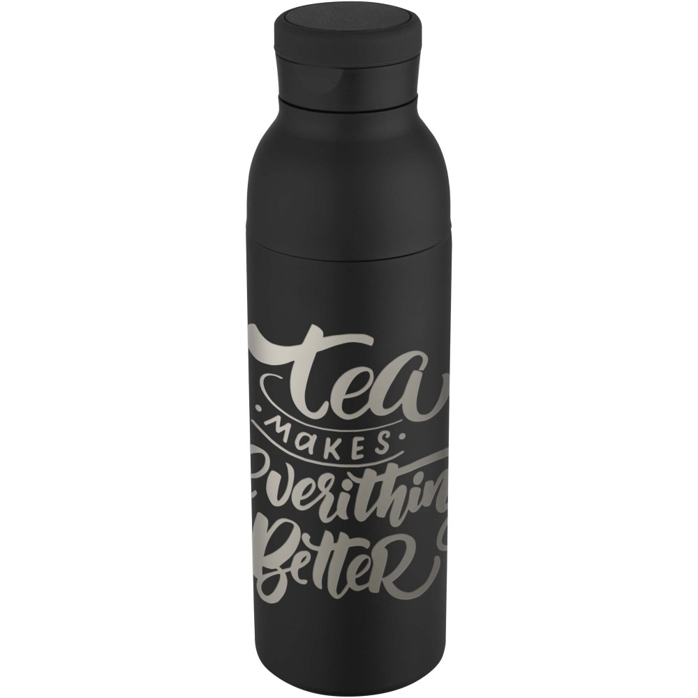 RCS tanúsítvánnyal rendelkező rozsdamentes acélból készült, duplafalú, vákuumszigetelt palack, amelynek fedelén egy diszkrét, beépített szilikon fogantyú található. Az italokat 48 órán át hidegen, vagy akár 12 órán keresztül melegen tartja. A két részből álló konstrukció megkönnyíti a tisztítást, míg a tartós porszórt bevonat és a belső rézszigetelés hosszú élettartamot és kiváló hőtartást biztosít. A terméket újrahasznosított kartonból készült ajándékdobozban szállítjuk. Űrtartalma: 650 ml.