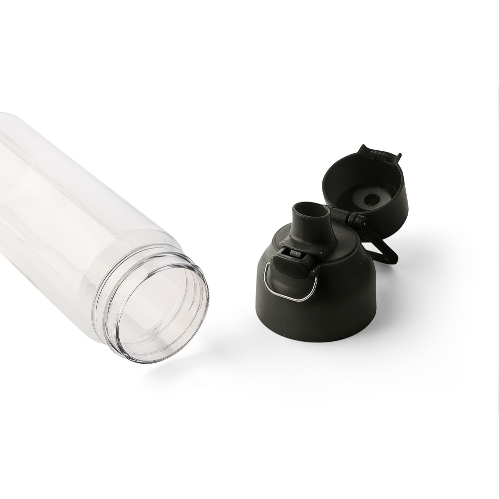 Tritán vizespalack 750 ml-es űrtartalommal, átlátszó palacktesttel és színes kupakkal. Tartós és könnyű anyagokból (PP) készült, amelyek ellenállnak a nedvességnek, a vegyszereknek és a mindennapi igénybevételnek. Mindennapi használatra tervezve; biztonságos nyomógombos zárral és felső hordozófogantyúval rendelkezik. Alkalmas munkához, iskolához vagy szabadtéri tevékenységekhez.