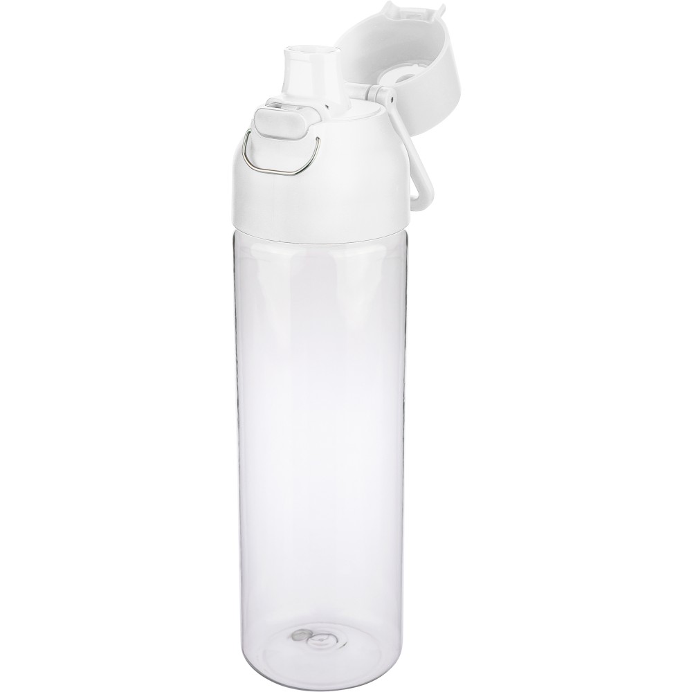 Tritán vizespalack 750 ml-es űrtartalommal, átlátszó palacktesttel és színes kupakkal. Tartós és könnyű anyagokból (PP) készült, amelyek ellenállnak a nedvességnek, a vegyszereknek és a mindennapi igénybevételnek. Mindennapi használatra tervezve; biztonságos nyomógombos zárral és felső hordozófogantyúval rendelkezik. Alkalmas munkához, iskolához vagy szabadtéri tevékenységekhez.